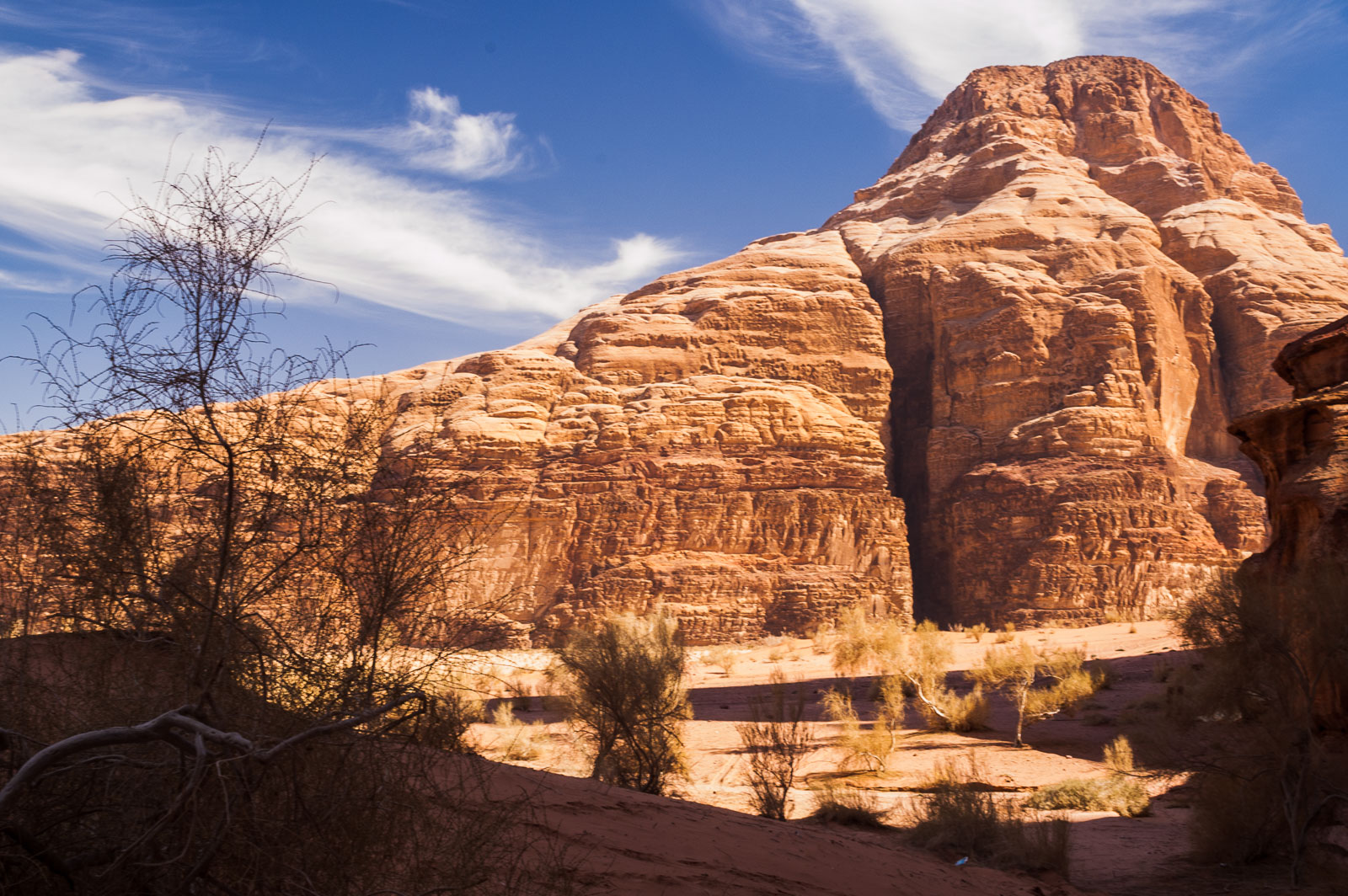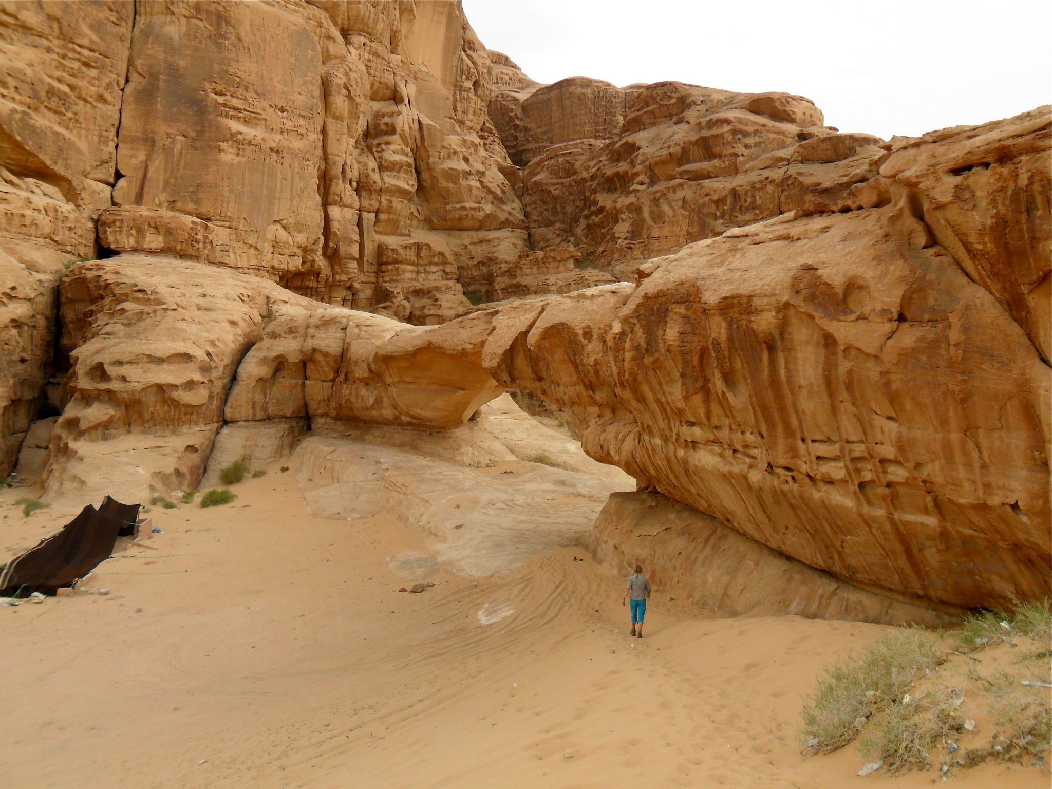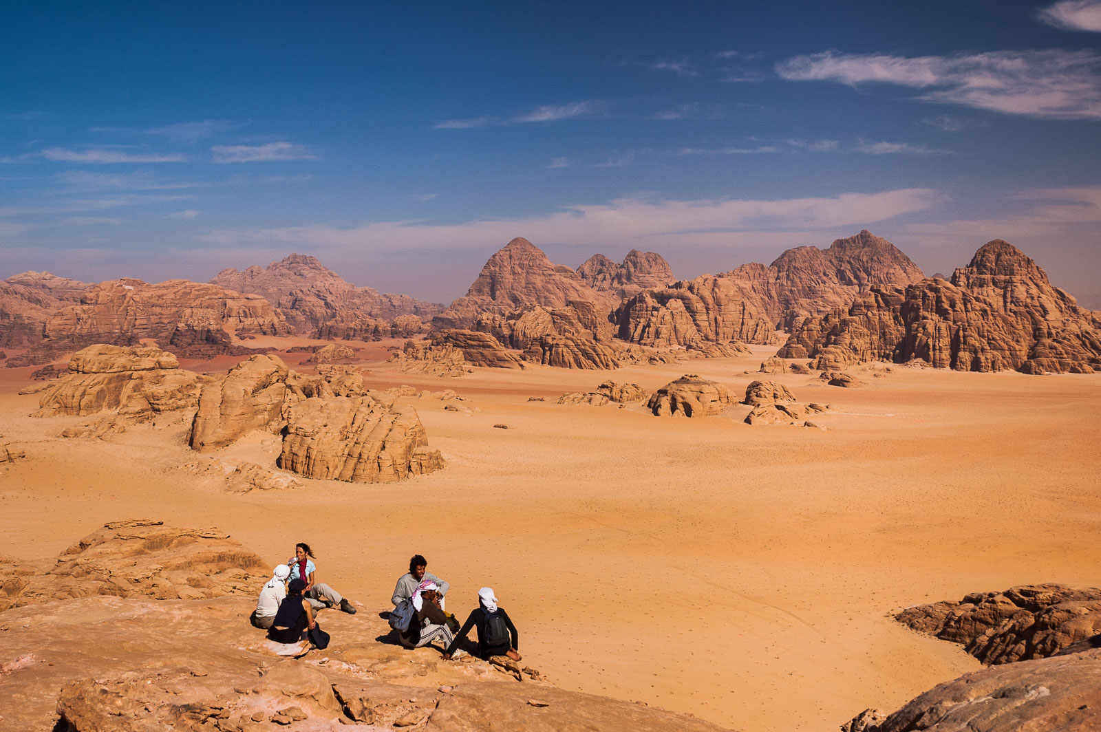 Een bezoek aan Wadi Rum is een reis naar een andere wereld, naar een stille en tijdloze plek, waar je je sterk bewust wordt van de nietigheid van de mens. In de woestijn van Wadi Rum leven de Bedoeïenen zoals ze at al sinds mensenheugenis gewend zijn. Ze trekken rond door de woestijn op zoek naar de beste plekken om hun kuddes geiten en schapen te hoeden. Waar ze ook gaan, ze nemen hun zwarte tenten met zich mee. Je kunt hier dagenlang ronddwalen zonder een sterveling tegen te komen. Afgezien wellicht van een Bedoeïenenfamilie die haar geitenharen tent heeft opgezet in het rozerode woestijnzand, en af en toe een groepje kamelen. Los daarvan is er niets wat u omringt, behalve torenhoge rotsen van rozerode zandsteen.