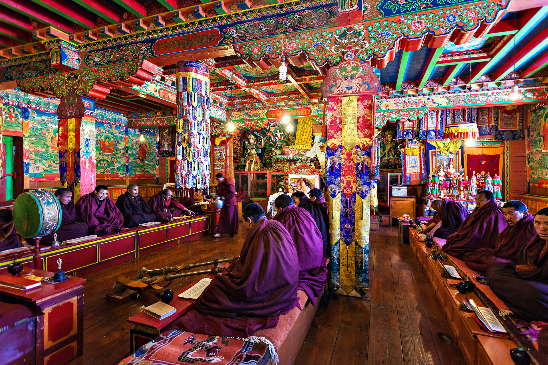 In de ochtend kan er vanaf het brede, gemakkelijke pad volop genoten worden van de uitzichten op de Ama Dablam en de kolossale Nuptse-Lhotse-wand waar de top van de Mount Everest nog net bovenuit steekt. Ook de kam waarop het Thyangboche-klooster ligt, is al van veraf zichtbaar. Het pad duikt weer in de diepe, beboste kloof van de Dudh Kosi. Na de lunch wacht ons nog de twee uur durende klim naar het Thyangboche-klooster door prachtige bossen. Dit klooster is in 1988 bijna geheel afgebrand, maar dankzij buitenlandse steun in 1993 feestelijk heropend tijdens het Mani Rimdu-festival. Dit jaarlijkse najaarsfestival is beroemd geworden door de maskerdansen die de monniken opvoeren. (Zie ook onze festivalreis: Mani Rimdu @ Everest, NB de Everest & Gokyo reis met vertrekdatum eind oktober heeft 1 extra dag en valt samen met het Mani Rimdu festival!)