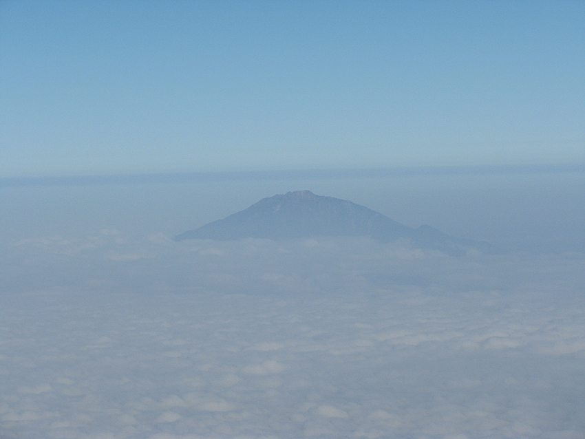 De helling wordt iets vlakker wanneer we bij de krater komen. We klimmen gestaag verder, links (met de klok mee) om de krater heen om de hoofdtop te bereiken. We hopen op de top aan te komen als de zon opkomt, misschien zijn we iets later, veel doet het er niet toe.