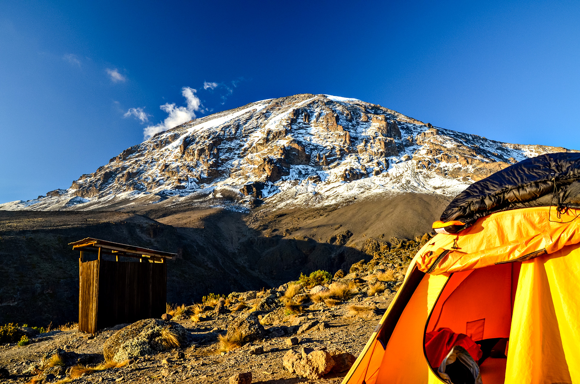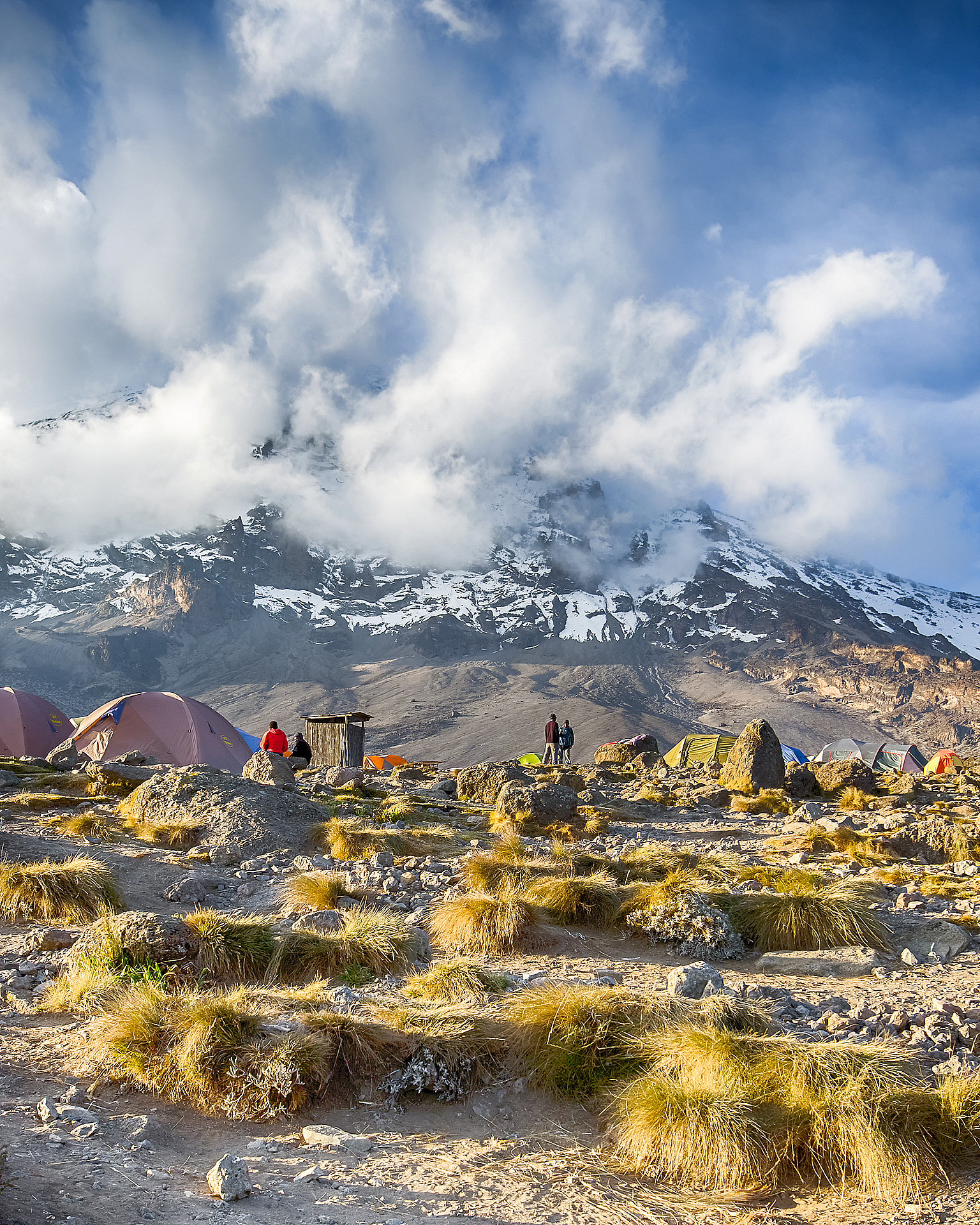 Het eerste uur van dag 2 trekken we door het laatste stukje regenwoud voordat we het gras- savanne-landschap bereiken. We lopen door de savanne naar Shira Camp 1, een eenvoudige wandeling. Vervolgens trekken we over het Shira Plateau naar Shira Camp 2. Bij Shira Camp 2 is het een enorme aanrader om naar een hoger gelegen punt te klimmen voor mooi uitzicht op de vallei onder en de bergtoppen boeven ons. De nacht kan al koud zijn, bereid je voor op een nacht met temperaturen onder het vriespunt.