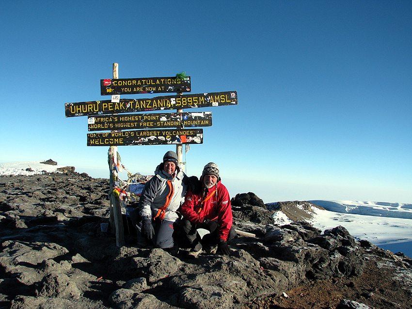 Vervolgens gaan we door tot Uhuru Peak, waar we rond een uur of zeven arriveren. Het doel is bereikt, je staat 5895 meter boven de zeespiegel op het hoogste punt van Afrika!