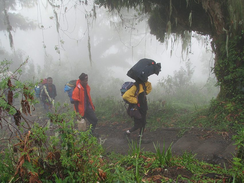In drie uur dalen we af. Vanaf nu wordt er afgeweken van de Machame-route (die enkel voor beklimmingen wordt gebruikt) en wordt de Mweka-route gevolgd (die enkel voor afdalingen mag worden gebruikt). In de late namiddag kom je aan bij de Mweka kampsite (3000 m) en dan zit je alweer in het regenwoud. Hier kan het pad glad en modderig zijn. De gamaschen zijn ook hier weer een uitkomst.