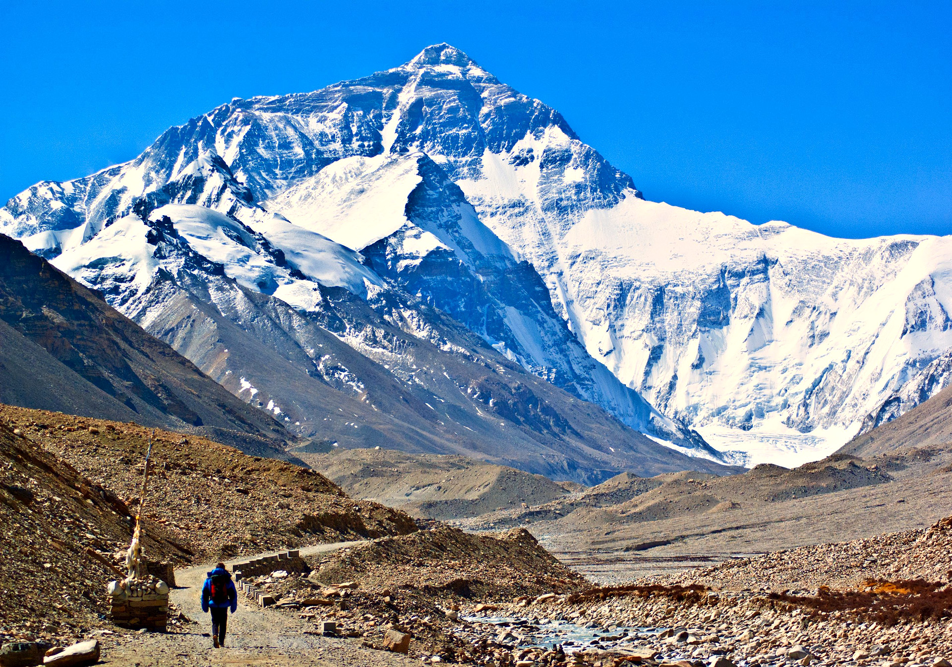 • Wandeling van Rongbuk klooster naar Everest BC v.v.