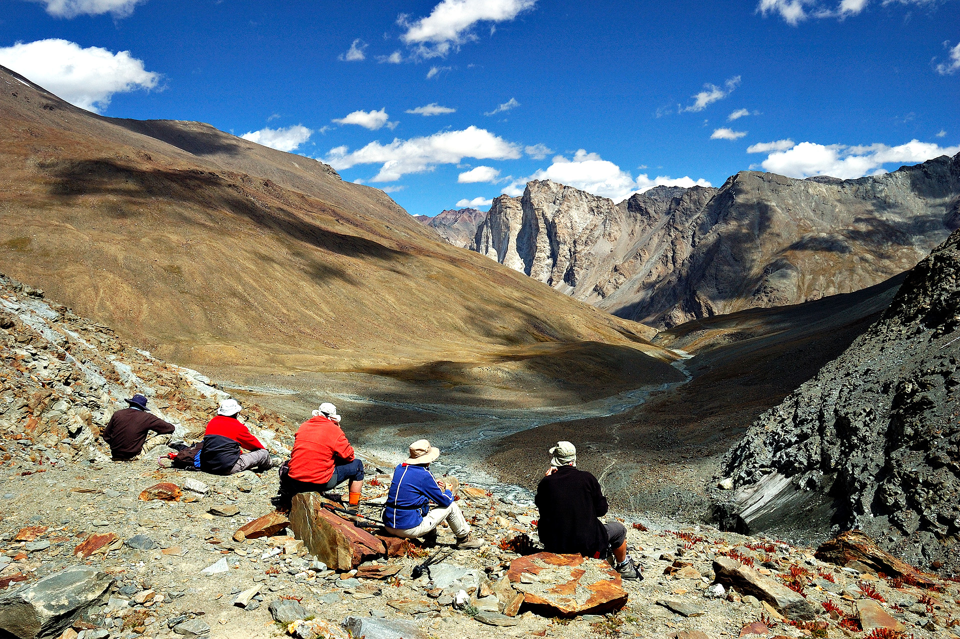Na een indrukwekkende vlucht over de Himalaya komen we aan in de ‘hoofdstad’ van Ladakh: Leh. Hier verblijven we een aantal dagen om aan de hoogte te wennen en om enkele kloosters te bezichtigen.  Na deze acclimatisatiedagen beginnen we aan de trektocht door de Markhavallei. Er wachten ons enkele avontuurlijke oversteken en schitterende kampplekken in de oases. Via een aantal hoge passen, waaronder de Ganda La (4900m) en de Stok La (4600m) bereiken we het basiskamp. We hebben drie dagen nodig om de Stok Kangri te beklimmen over puinhellingen. Voor de laatste inspannende 400 meter over een sneeuw- en ijshelling van 35 graden zijn soms pickel en stijgijzers nodig. Vanaf de top hebben we uitzicht over de Indusvallei, de Karakoram en Tibet. We keren terug naar de Stok La en rijden vanaf Stok met jeeps terug naar Leh.